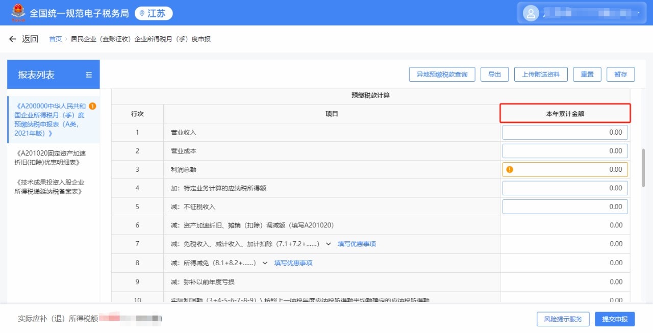 误区一:预缴纳税申报表填写的都是本季度金额。